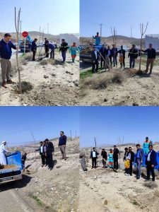 درختکاری دراطراف جاده دسترسی به پارک گردشگری غار مزداوند با حضور مسوولین شهر مزداوند در سومین روز نوروز ۱۴۰۳