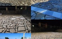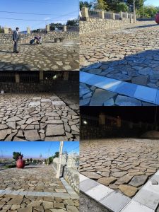 زیباسازی و مفروش کردن ترکیبی سنگ تاوه با موزائیک در پیاده روی جنب شهرداری توسط مدیریت شهری مزداوند
