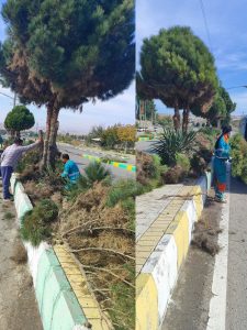 هرس پاییزی درختان بلوار امام رضا(ع) شهر مزداوند